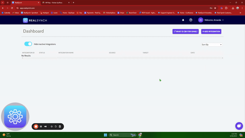 Your integration is now active! You can access and update your Integration's Source and Target Options by clicking the wrench icon next to the Source and Target on the Realsynch dashboard.