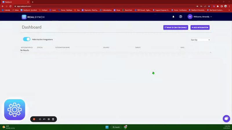 Your integration is now active! You can access and update your Integration's Source Options by clicking the wrench icon next to the Source on the RealSynch dashboard.