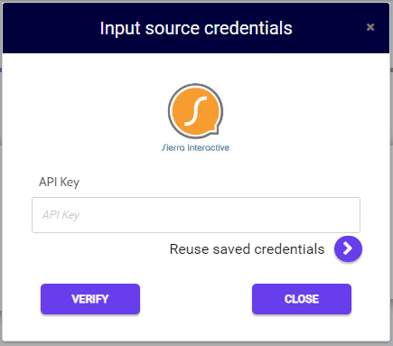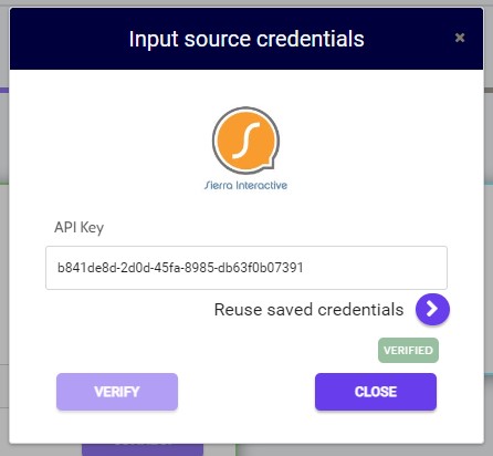 Next, login to your Sierra Interactive Admin/Owner account, select Integrations from the drop down settings menu, select the Sierra Interactive icon from the list of available integrations, and copy the provided API Key: