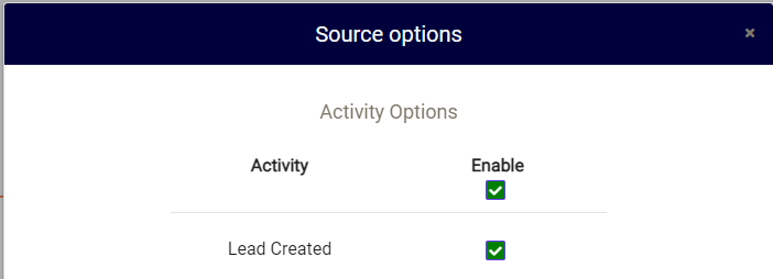 - Under Source Options > Custom Mappings, you have the ability to Enable or Disable the mapping of Lead Statuses: